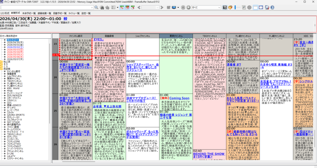 - レコーダーとの連携 このソフトの大きな特徴の一つに、家庭内LANを経由してパナソニックの「DIGA(ディーガ)」へ直接録画予約ができる機能があります。 ただし、私は本ソフトを「番組表ビューワー」としてのみ活用しており、予約機能については未検証です。利用される場合は、自己責任にて設定をお願いします。